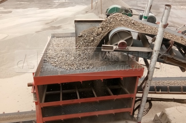 料倉-振動給料機-錘式破碎機-反擊式破碎機-振動篩-成品石料-沖擊式破碎機-振動篩-洗砂機-成品砂。其中,振動可共用也可分開使用,各設備中間以溜槽或皮帶輸送機相連。